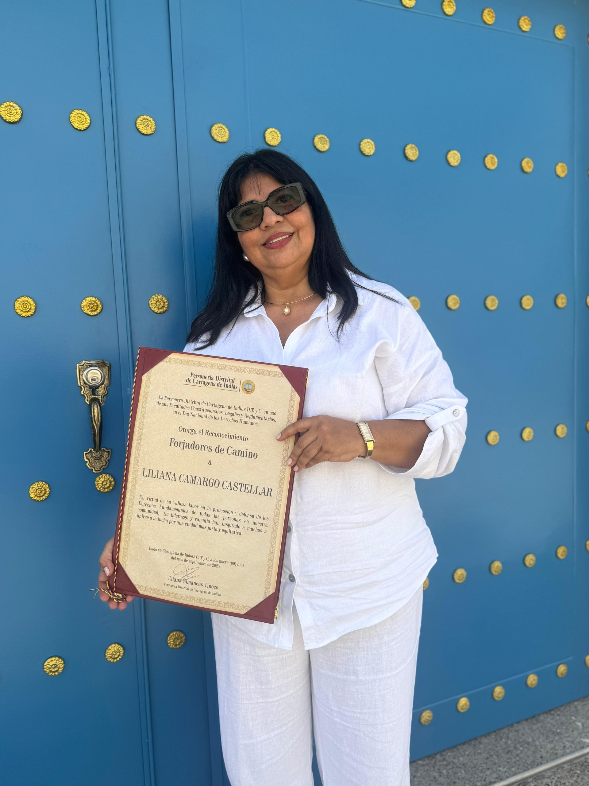 La Personería Distrital de Cartagena en el marco de la conmemoración del Dia Nacional de los Derechos Humanos 9 de septiembre de 2025, me honro con el Reconocimiento FORJADORES DE CAMINOS, por el trabajo realizado en favor del Empoderamiento Femenino